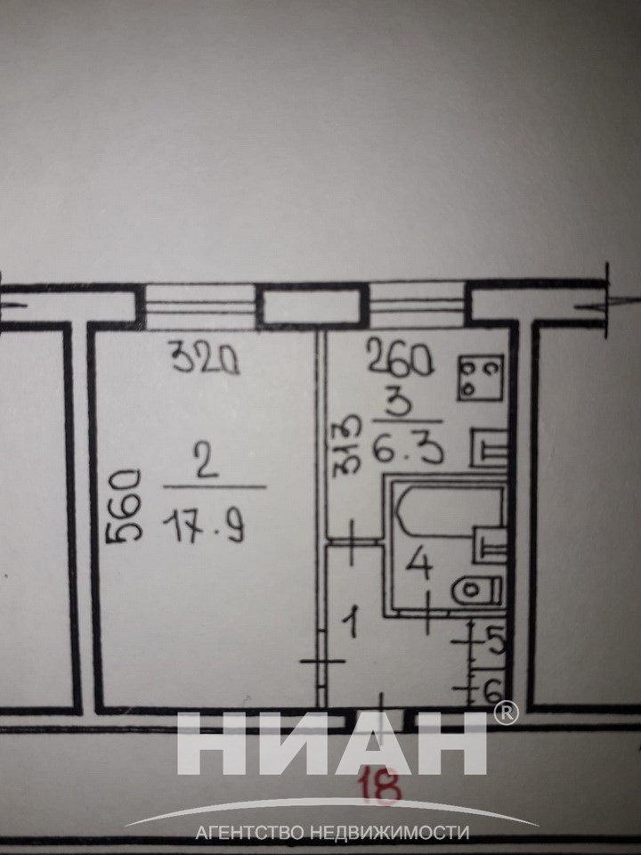 Жилая площадь 17.9 м2