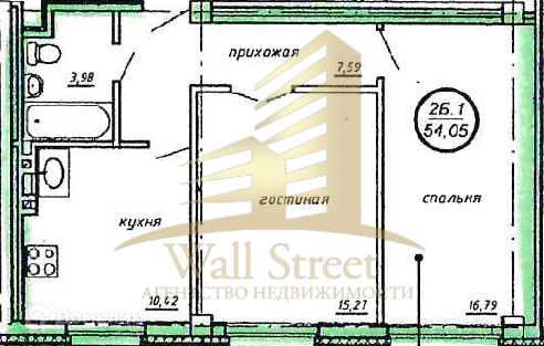 Общая площадь 54.2 м2