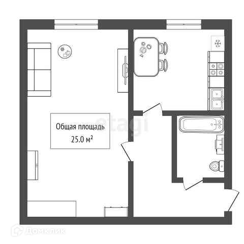 Общая площадь 25 м2