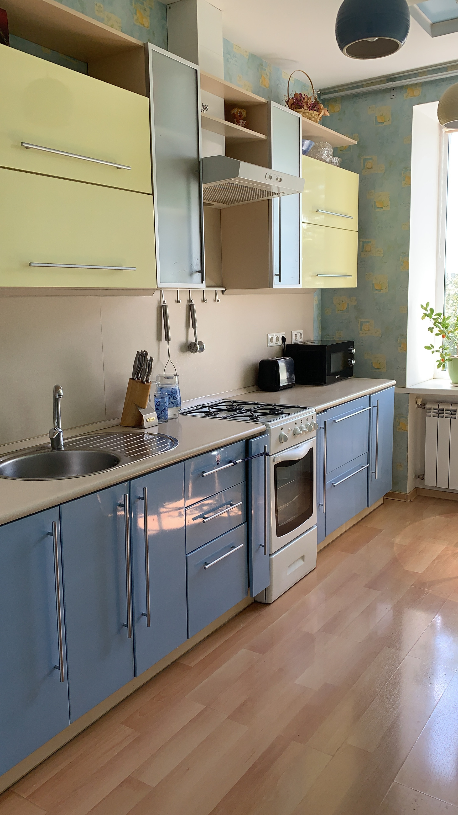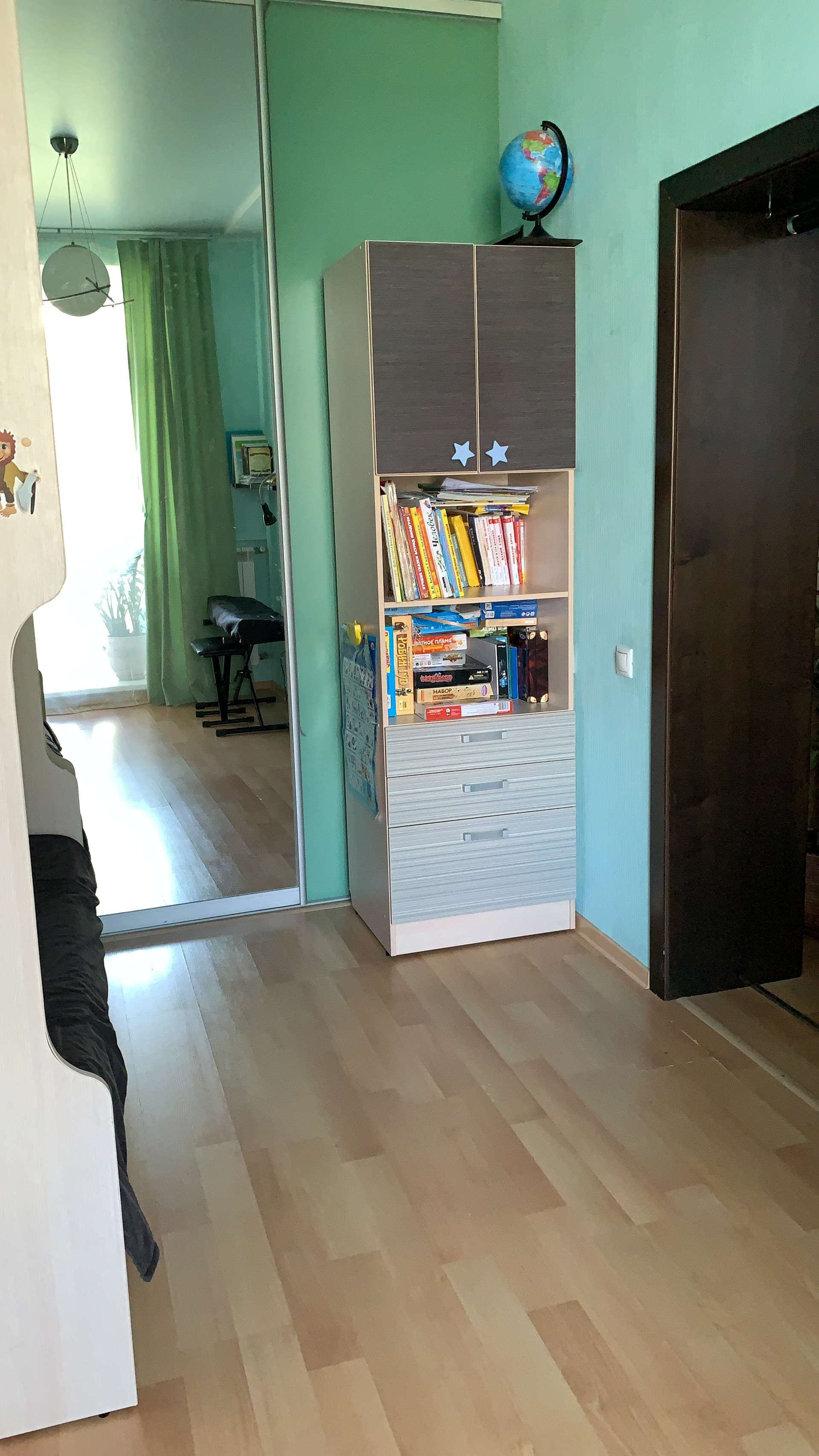 Новым хозяевам остается вся встроенная мебель: гардеробная в спальне, книжные полки и шкафы в зале, кухонный гарнитур, вместительные шкафы в прихожей.