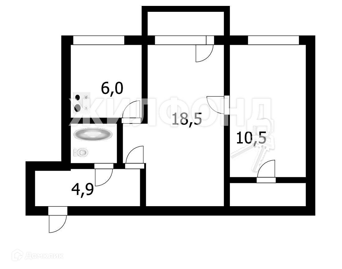 2-комнатная квартира, 45.2 м2, этаж 3 / 4, на продажу в Новосибирске, улица Солидарности, 59