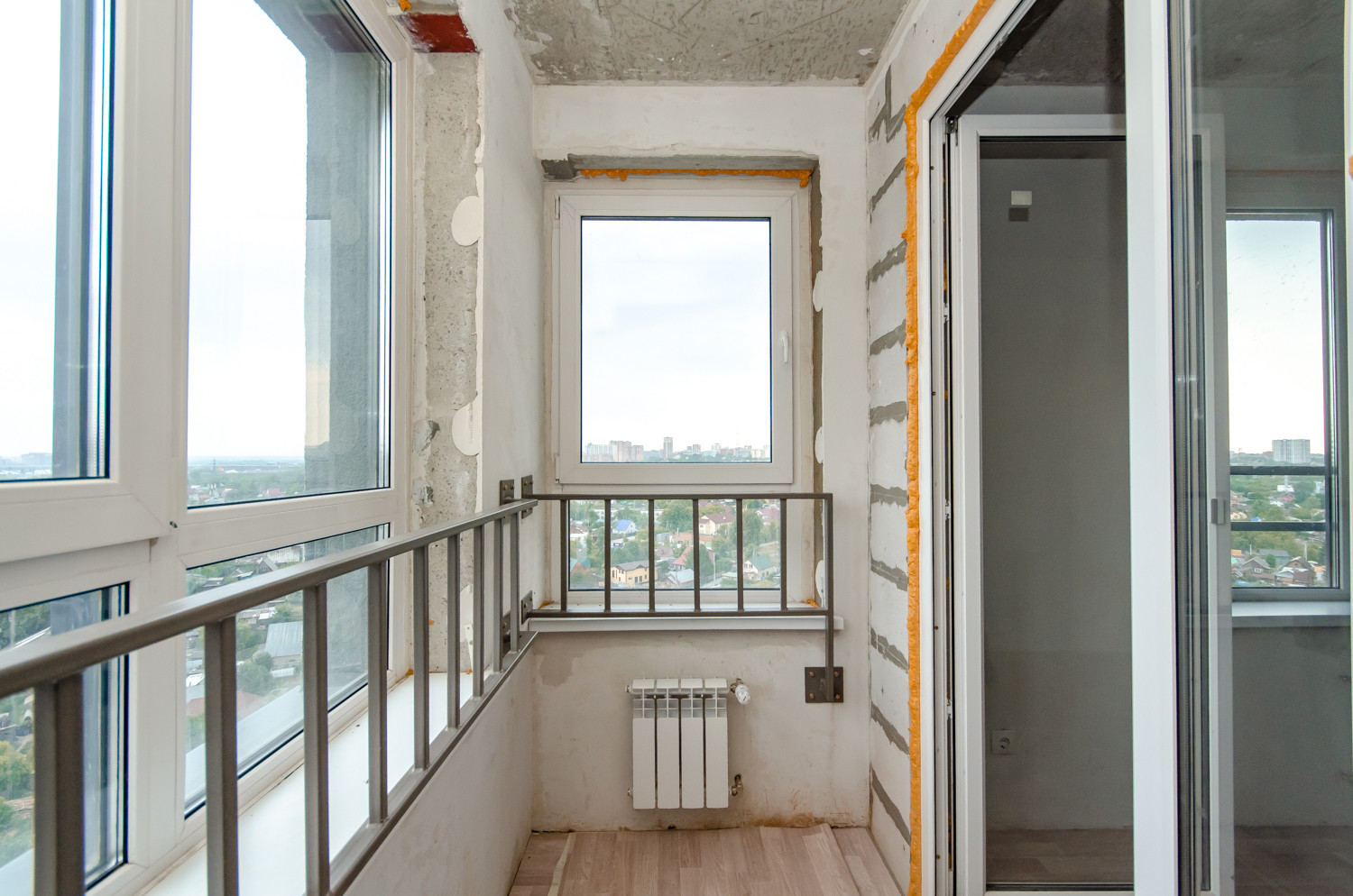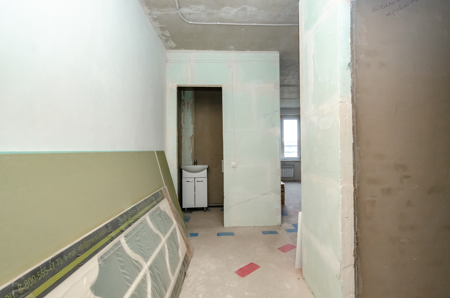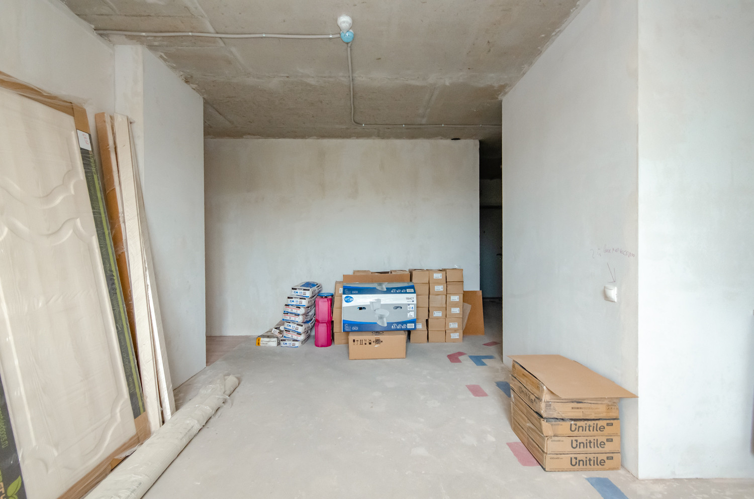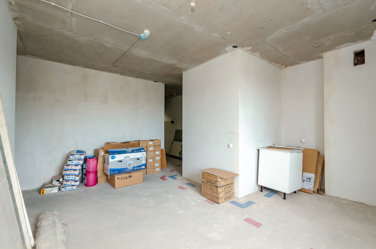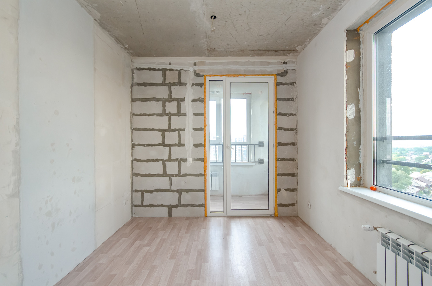 Квартира расположена на видовом 15 этаже. В подарок будущему покупателю остаются строительные материалы, на фото они видны.