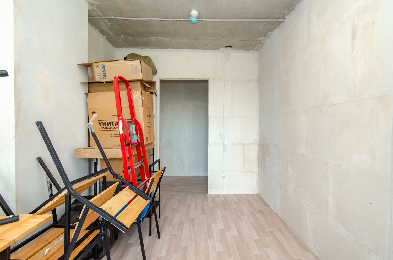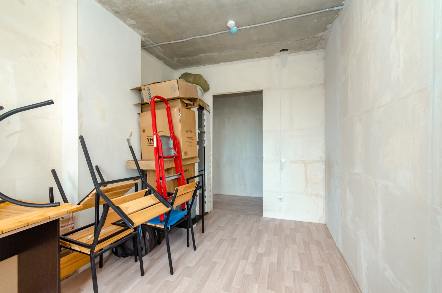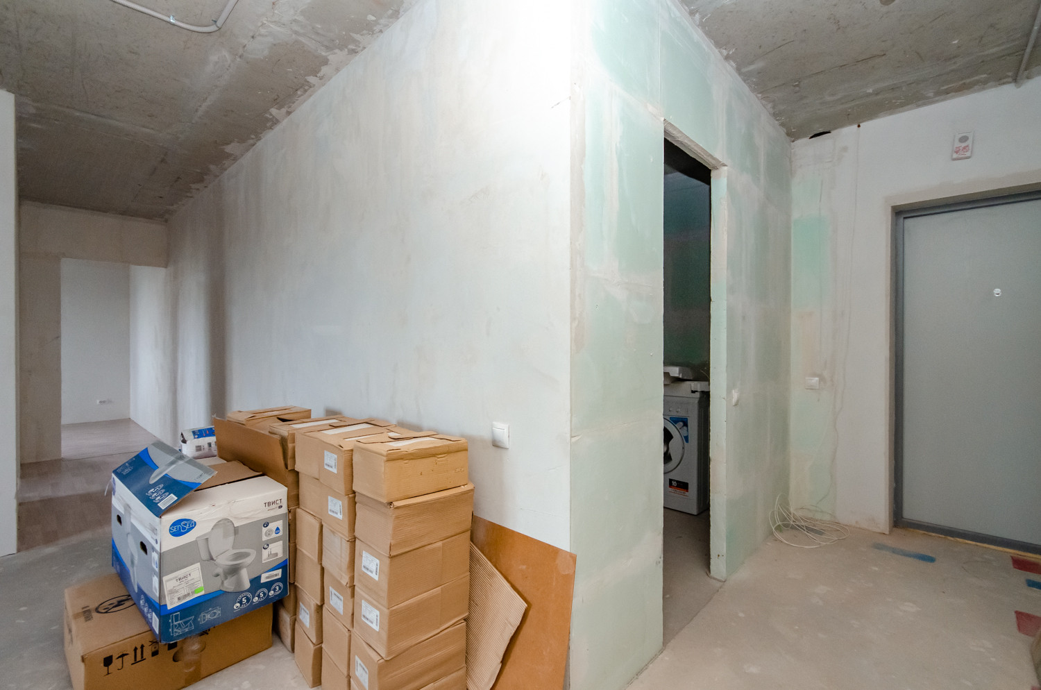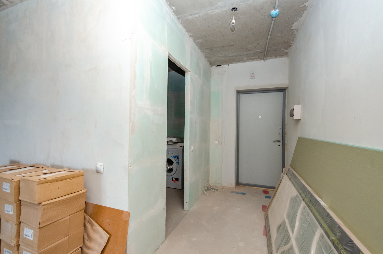 Квартира расположена на видовом 15 этаже. В подарок будущему покупателю остаются строительные материалы, на фото они видны.