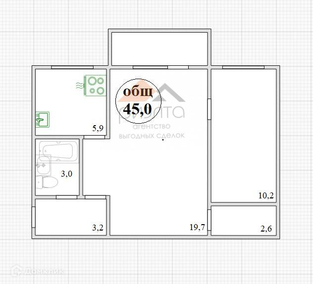 Общая площадь 45 м2