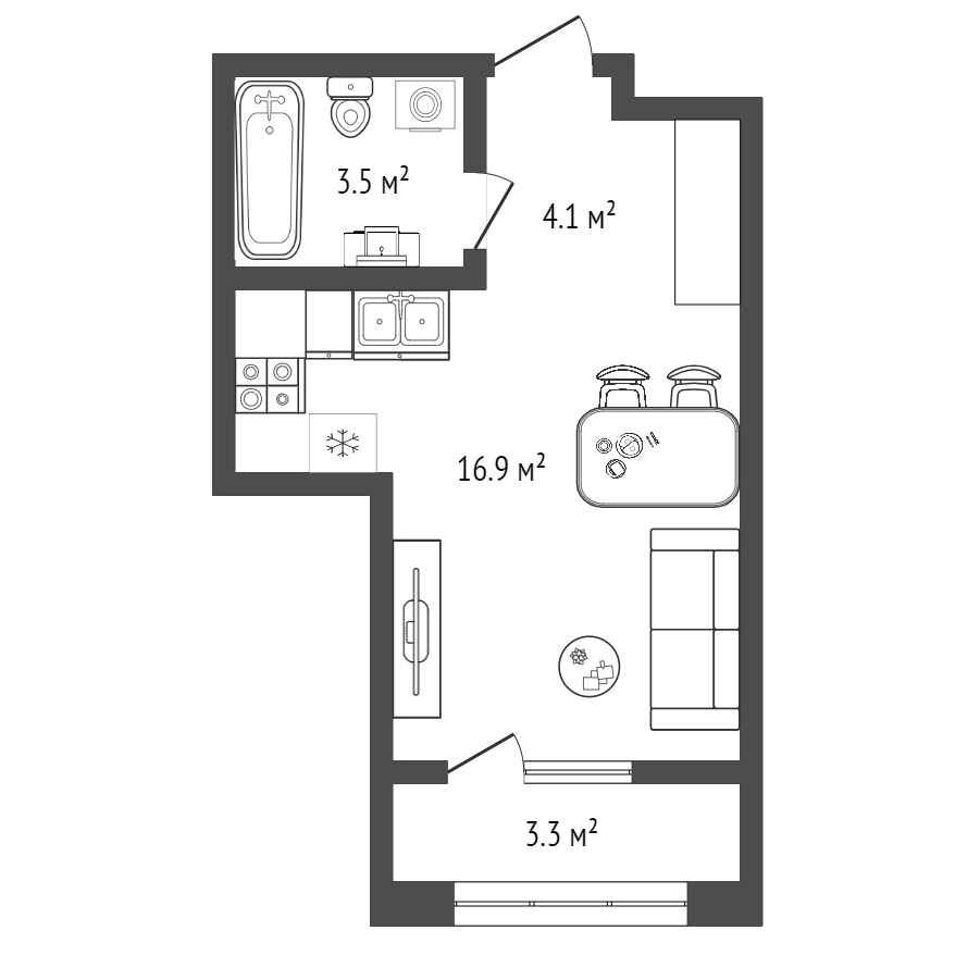 Общая площадь 25.5 м2