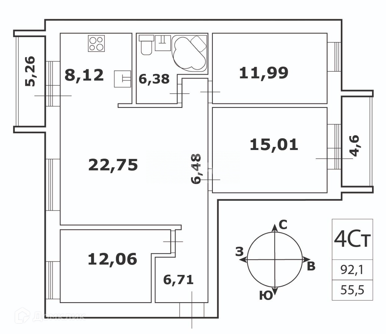 4-комнатная квартира;