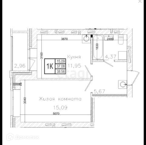 Общая площадь 38 м2
