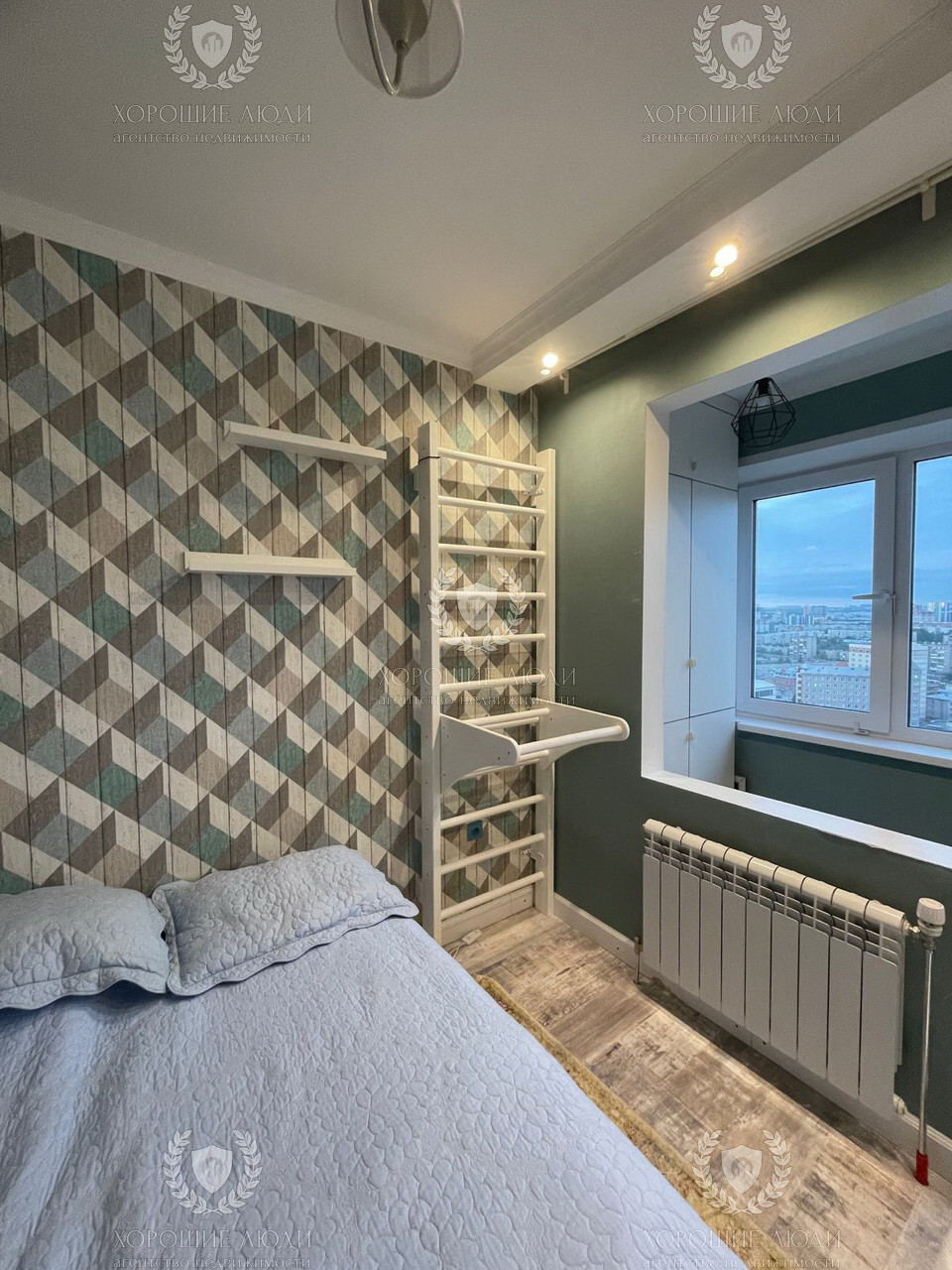 Окна выходят на город, где открывается шикарный перспектива на город.