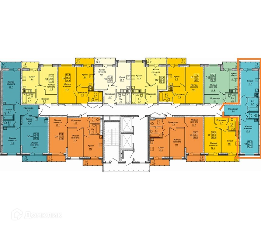 Общая площадь 42.3 м2