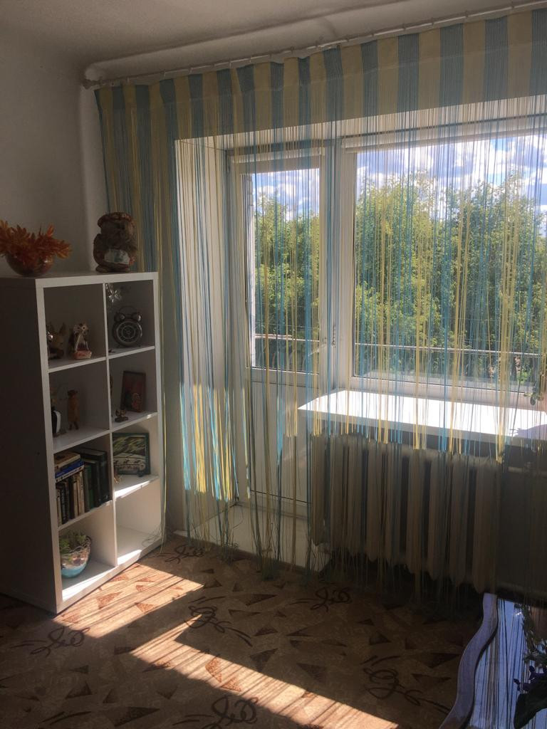 Квартира расположена на третьем этаже( четвертый по уровню рельефа улицы), окна выходят на солнечную сторону.