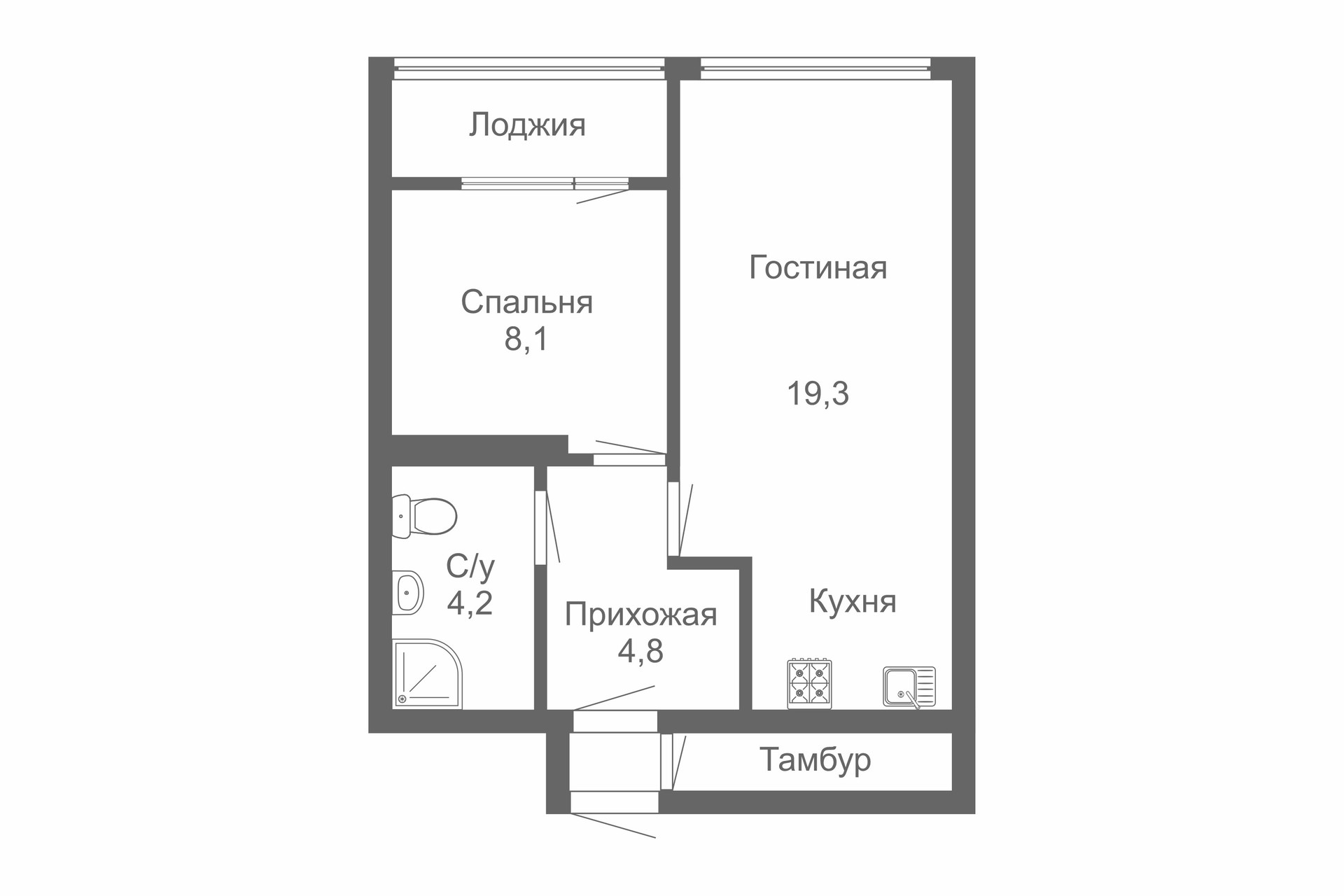 Общая площадь 41 м2