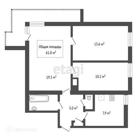 Общая площадь 61 м2