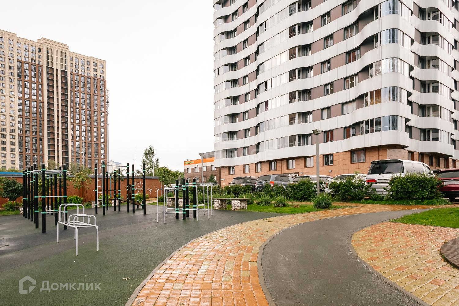 Спортивная и детская площадки - во дворе (без машин).