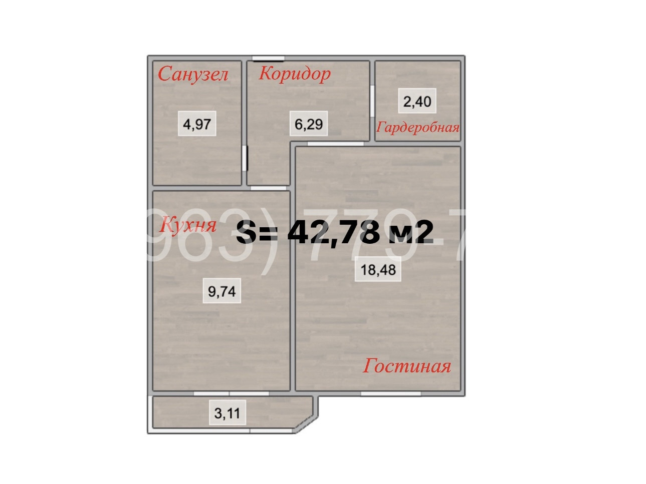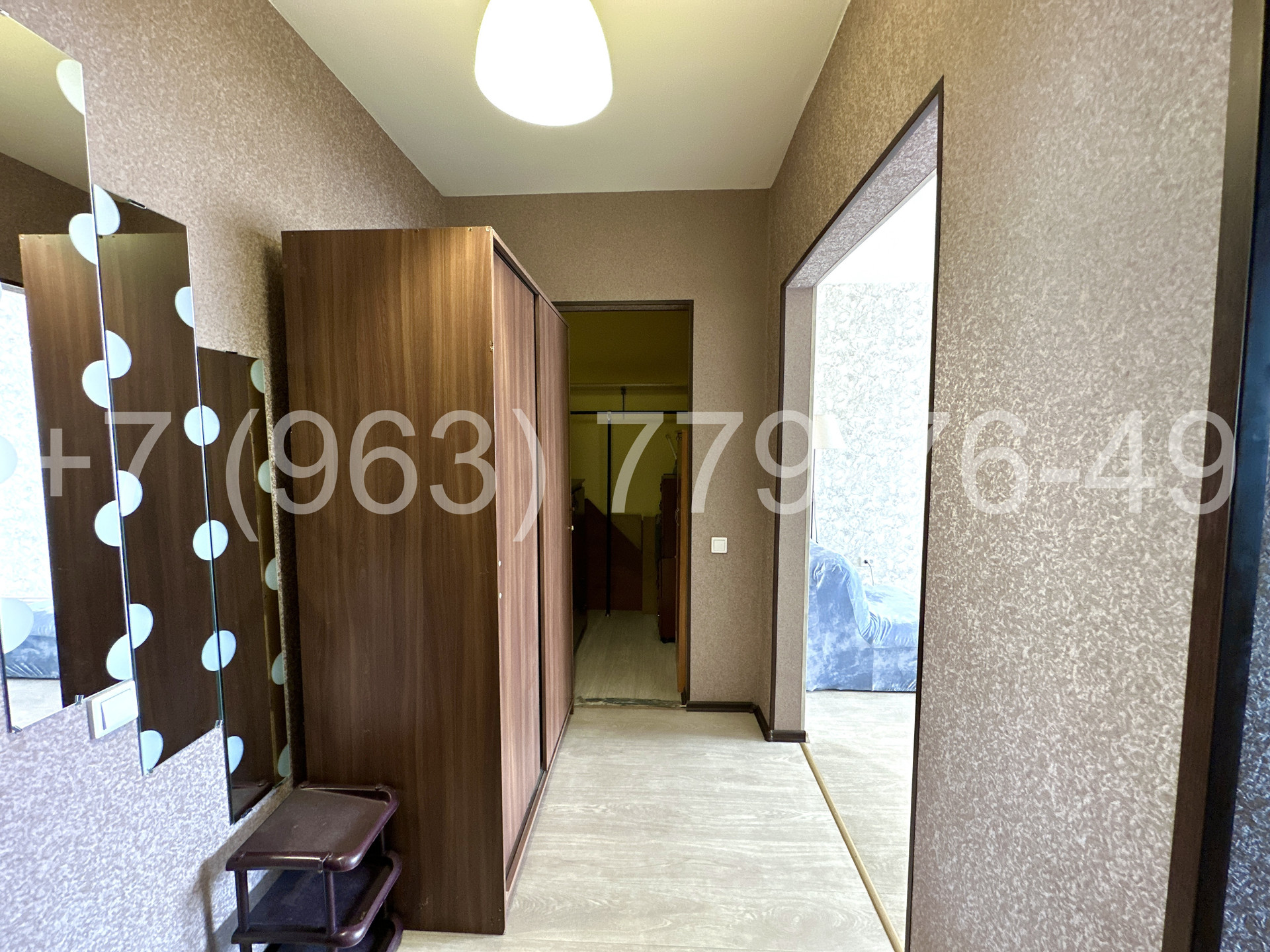 В квартире имеется гардеробная, просторный совмещенный санузел и большая гостиная 18,48 м2.