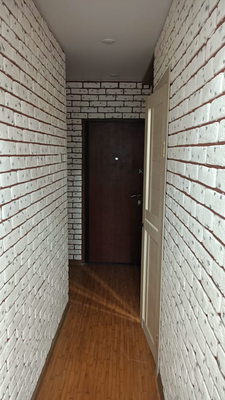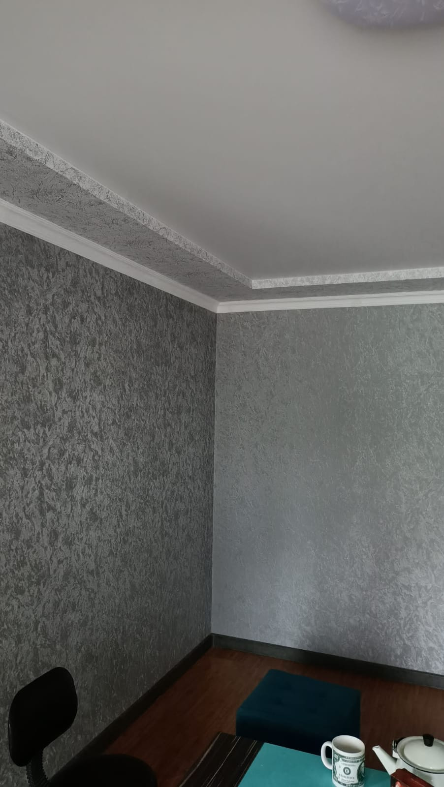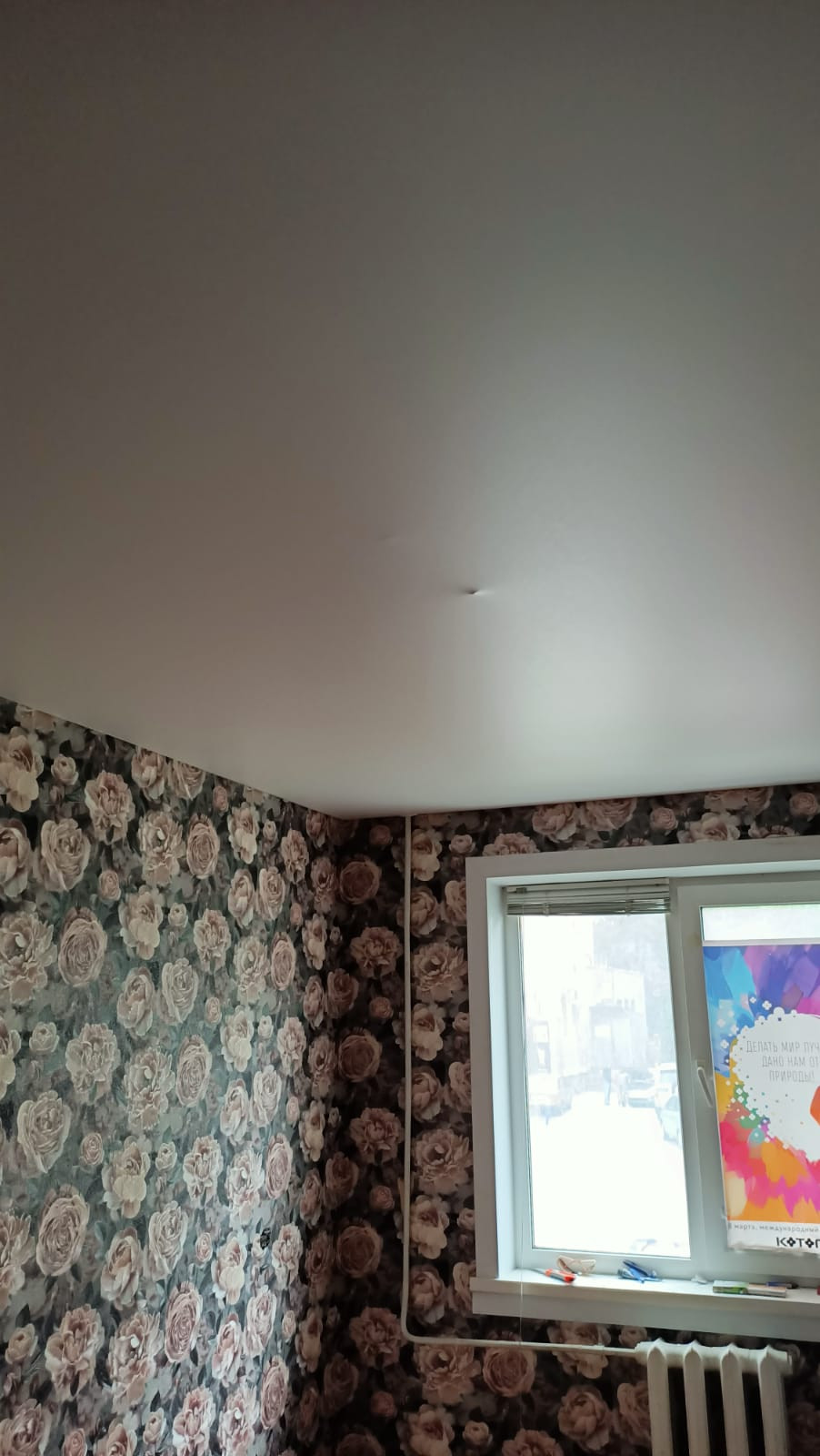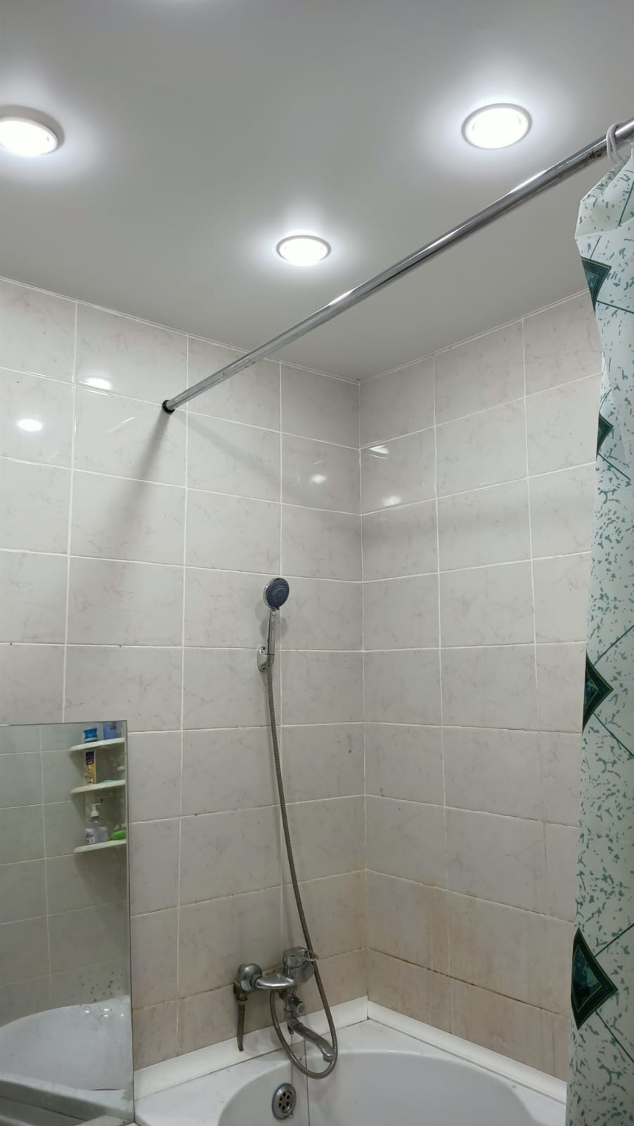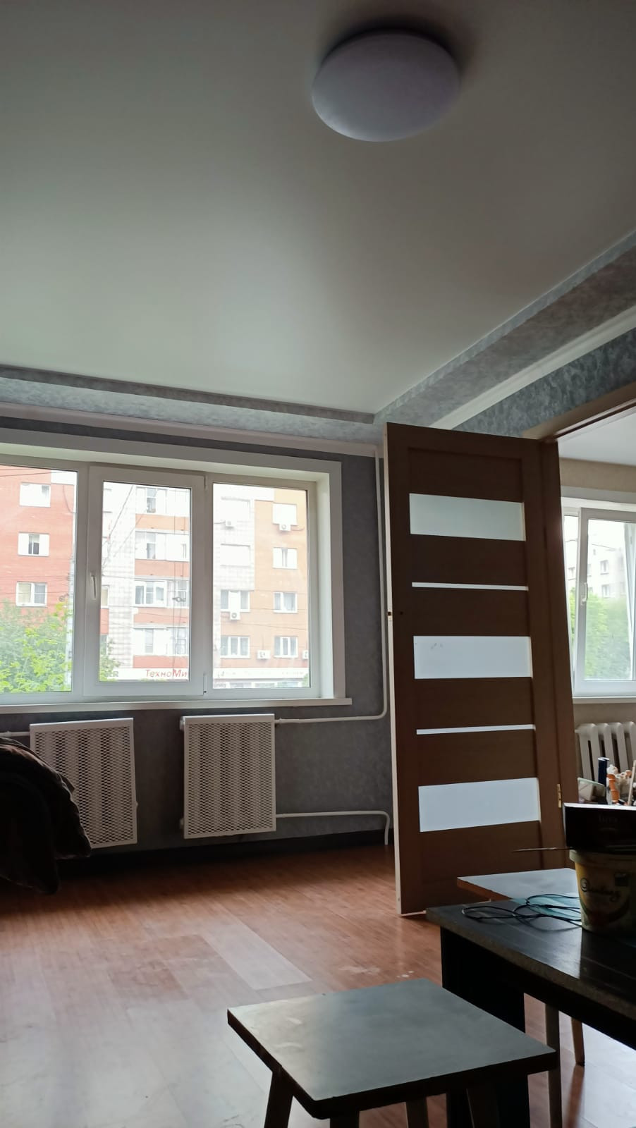 Во всей квартире натяжные потолки с красивыми светильниками.