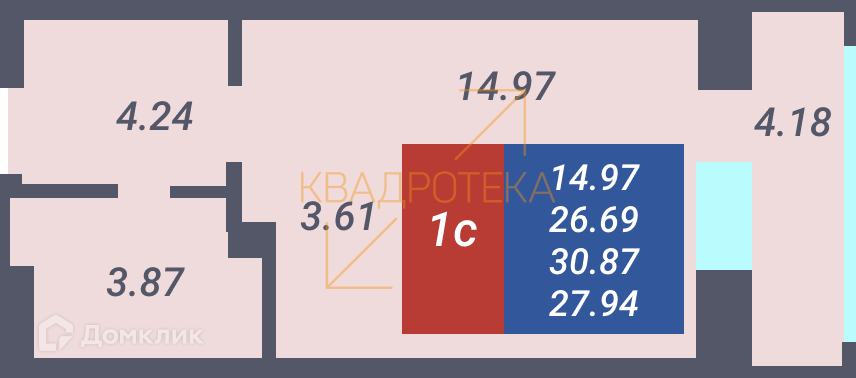 Жилая площадь 14.97 м2