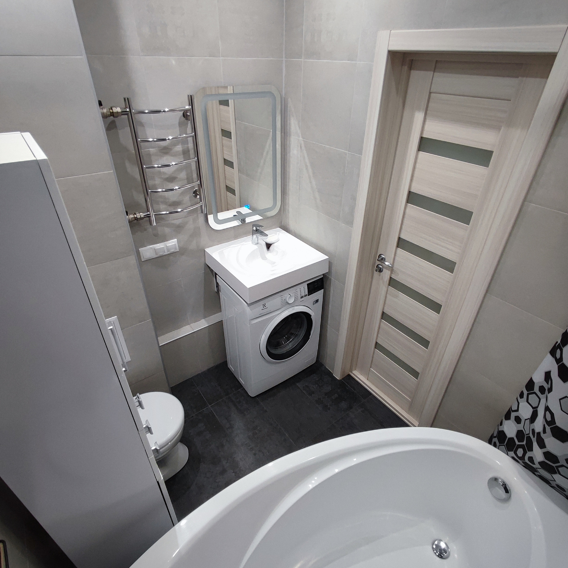 - полностью укомплектованный сан. узел включая стиральную машину.