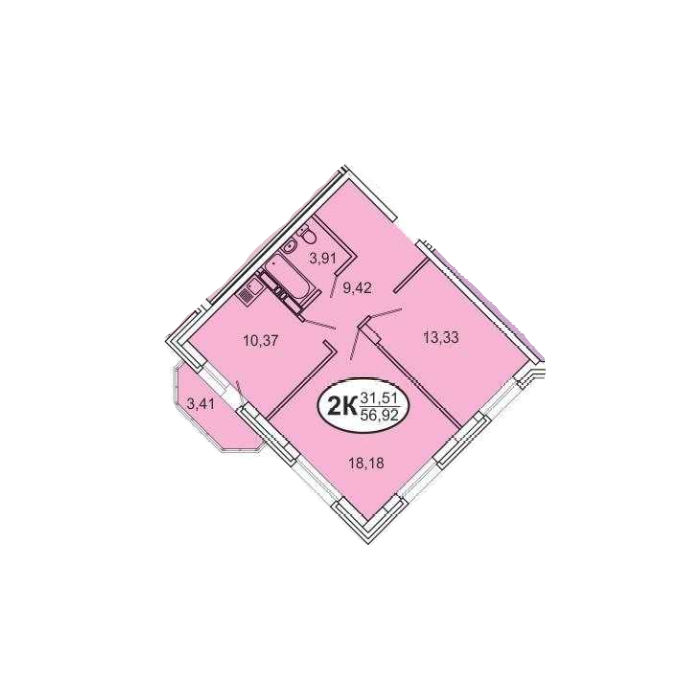 Общая площадь 56.3 м2
