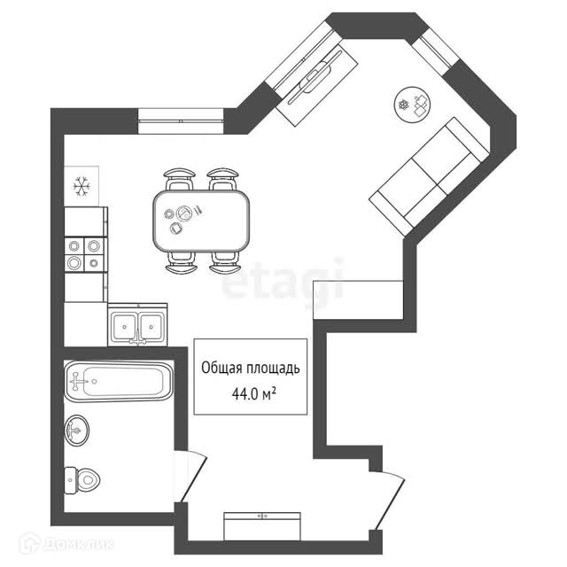 Общая площадь 44 м2