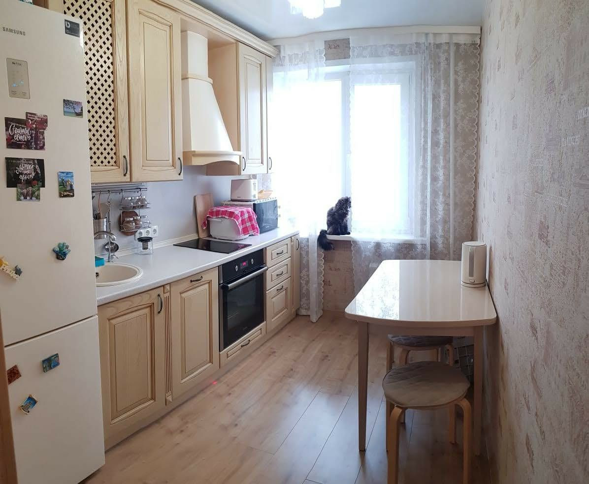 - кухня: встраиваемая техника Bosch (плита, духовка, посудомоечная машина), большой холодильник, раздвижной стол, проводка под установку ТВ, вытяжка и система фильтрации воды