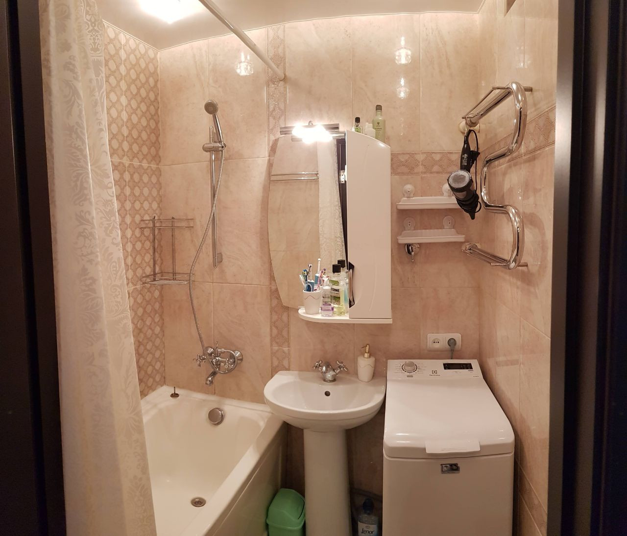 - ванная и сан.узел - всё высокого качества, водонагреватель Electrolux, дорогая стиральная машина (вертикальная - тихая и мощная) Electrolux, подвесной унитаз