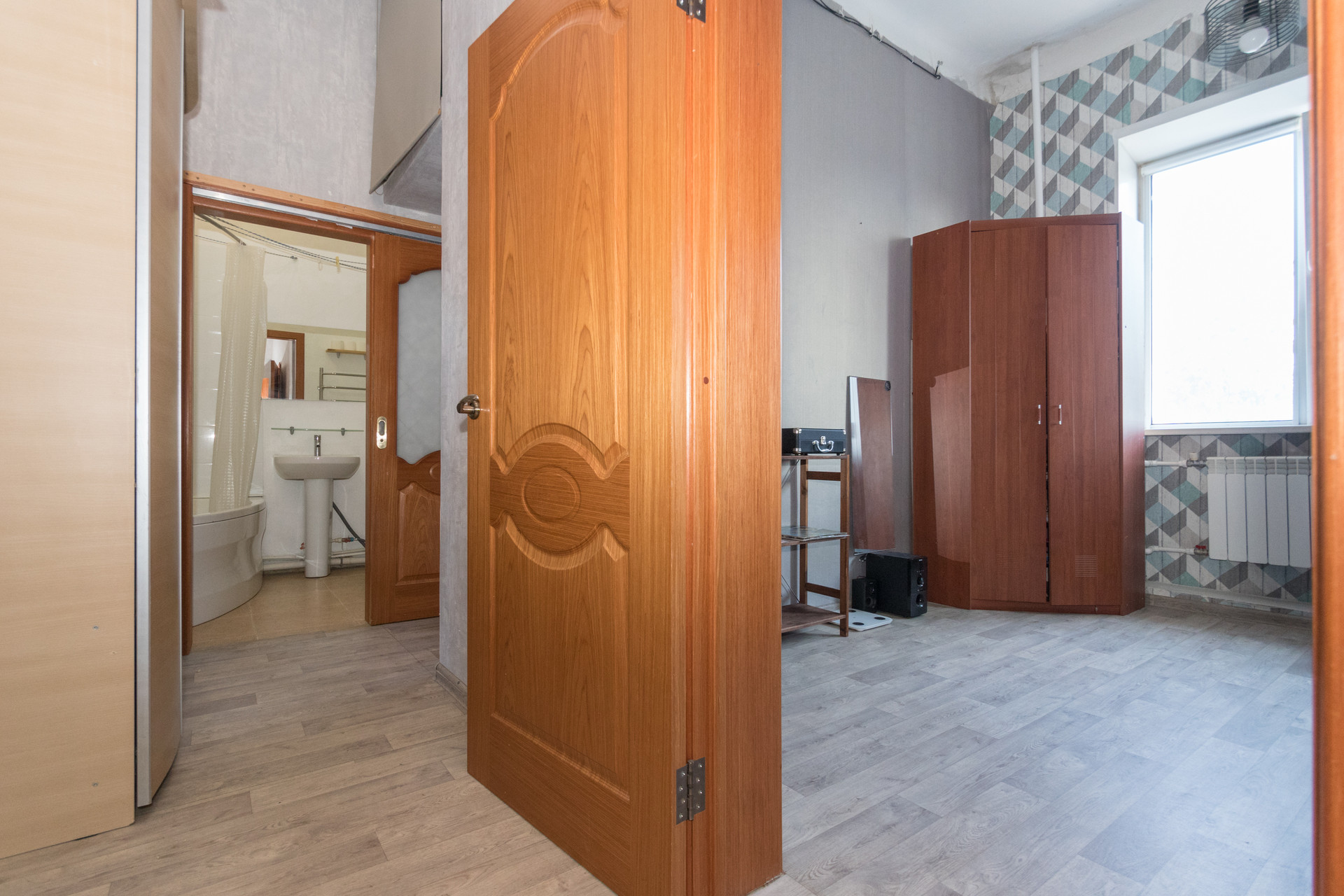 2) Квартира светлая, просторная, высокие потолки 3,7 метра. Окна выходят на проспект Димитрова..