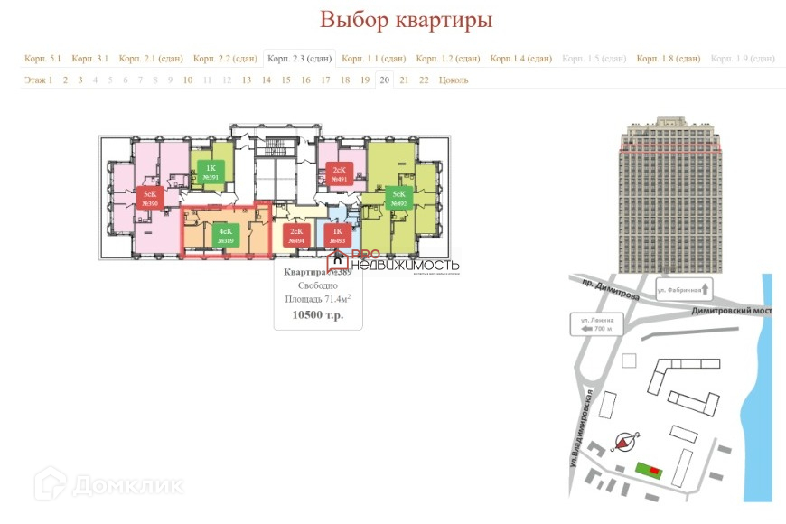 Этаж / Этажность 20 / 22