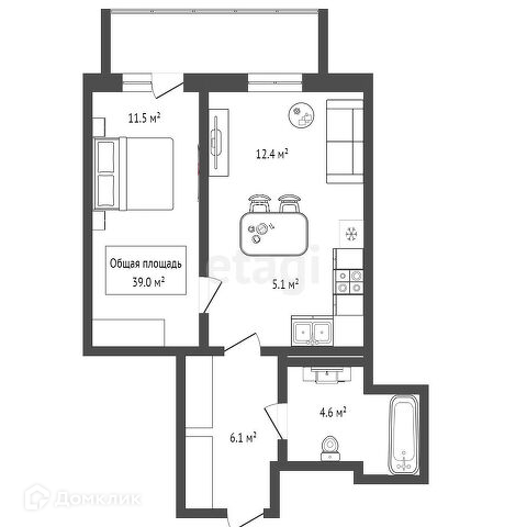 Общая площадь 39 м2