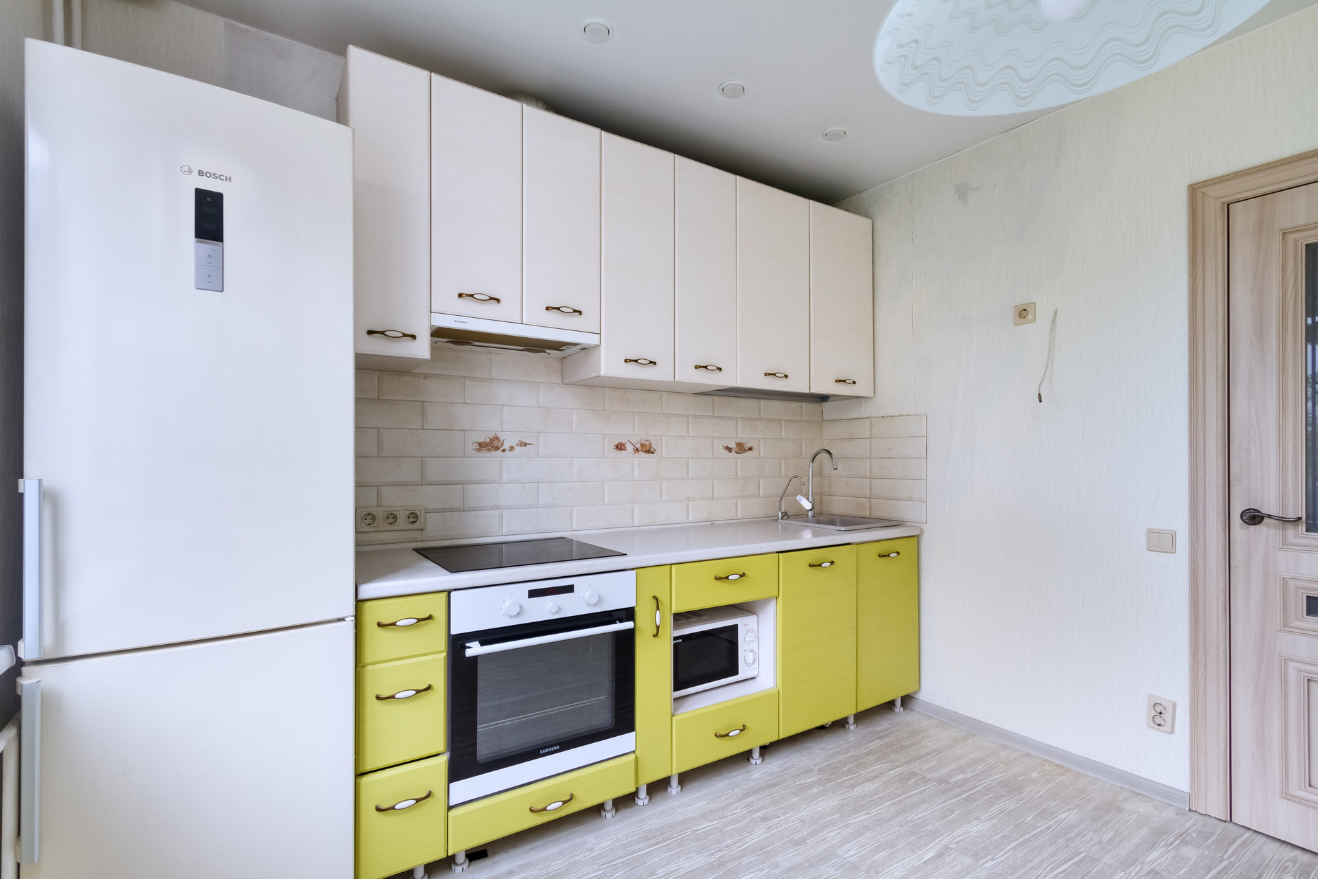 В кухонный гарнитур встроены: посудомоечная машина. духовой шкаф, вытяжка, варочная панель!
