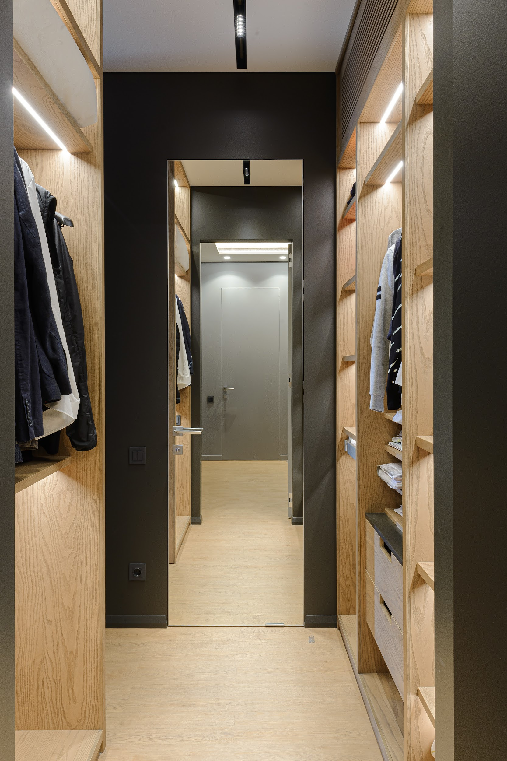 Глубокие встроенные шкафы.