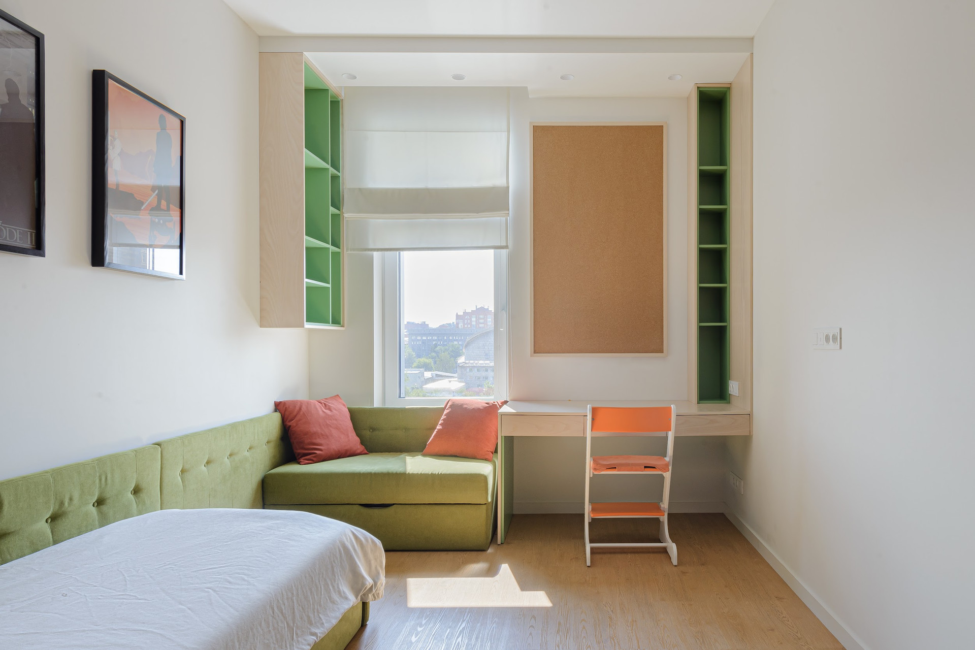Спальни выходят окнами на Нарымский сквер (южная сторона).