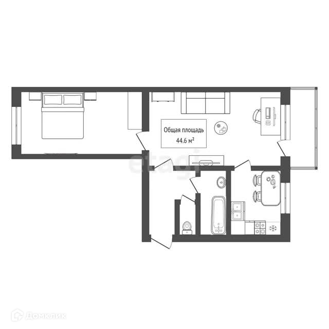 Общая площадь 44.6 м2
