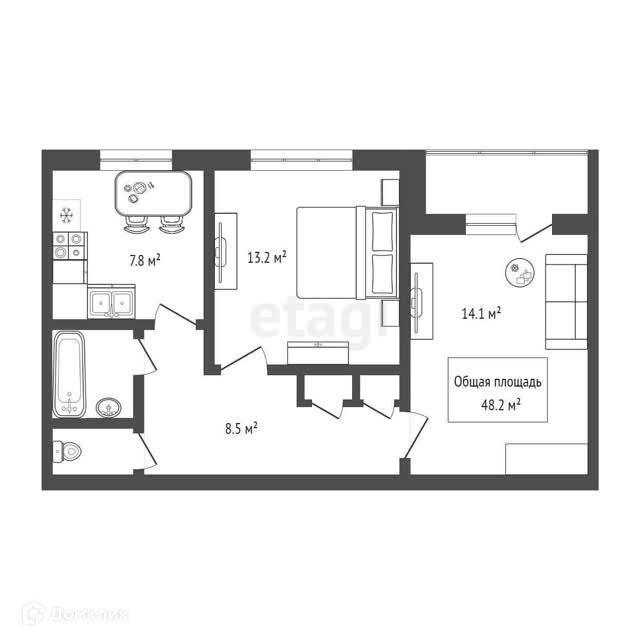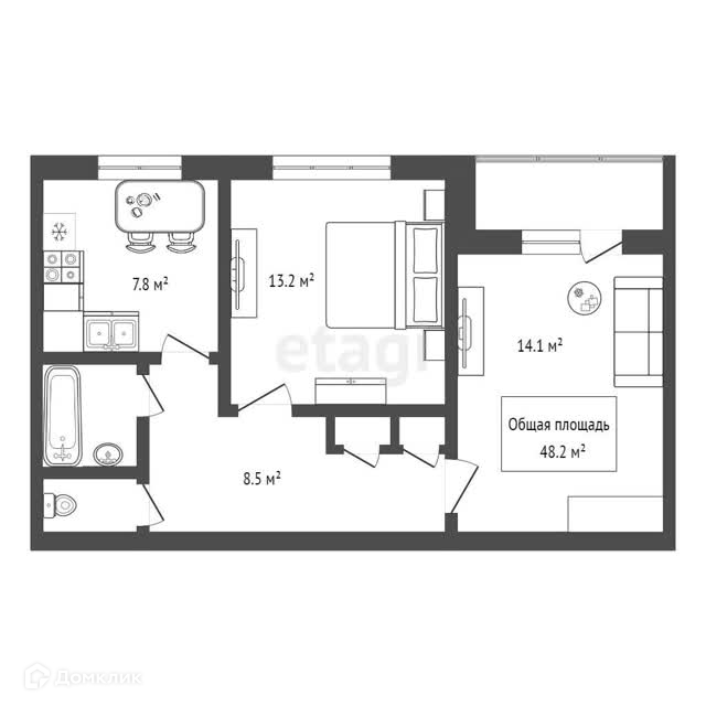 Общая площадь 48.2 м2