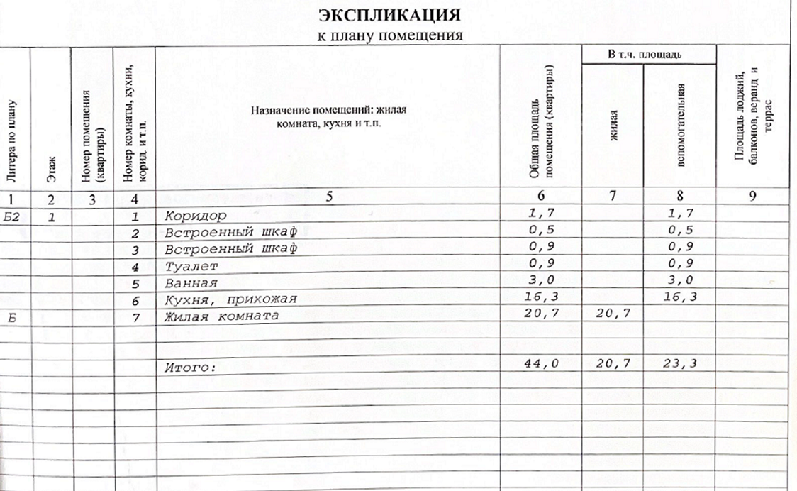 Общая площадь 44 м2