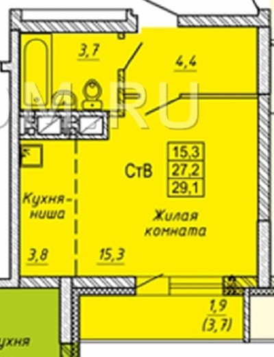 Общая площадь 29.2 м2