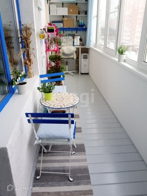 Лоджия утеплённая (2-3 слоя Пеноплэкса). Есть дополнительно 2 потолочных ИК-обогревателя Ballu (остаются покупателю), мобильный кондиционер с выбросом горячего воздуха на улицу.
