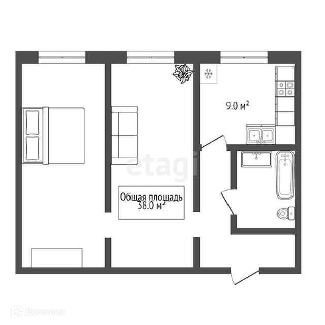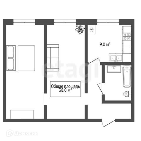 Общая площадь 38 м2