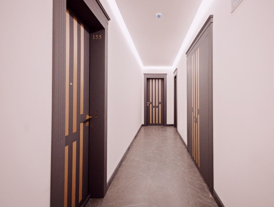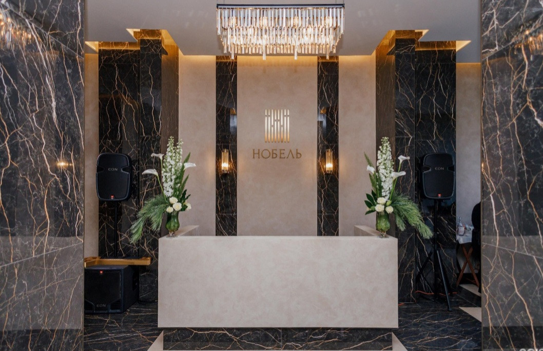 Дом «Нобель» это абсолютное воплощение изысканного и строгого ар-деко. Архитектурный замысел пронизывает всё пространство: интерьер холлов, ландшафтное освещение, озеленение, раскладку плитки. Каждый элемент воссоздает характерные орнаменты и колористику.
