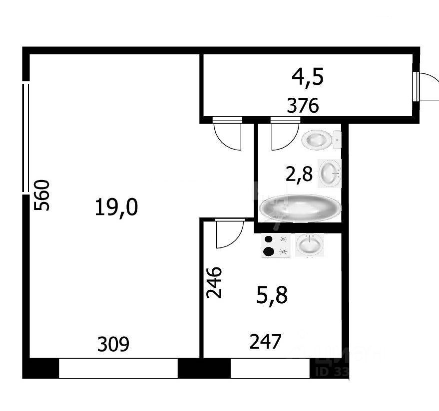Общая площадь 30.8 м2