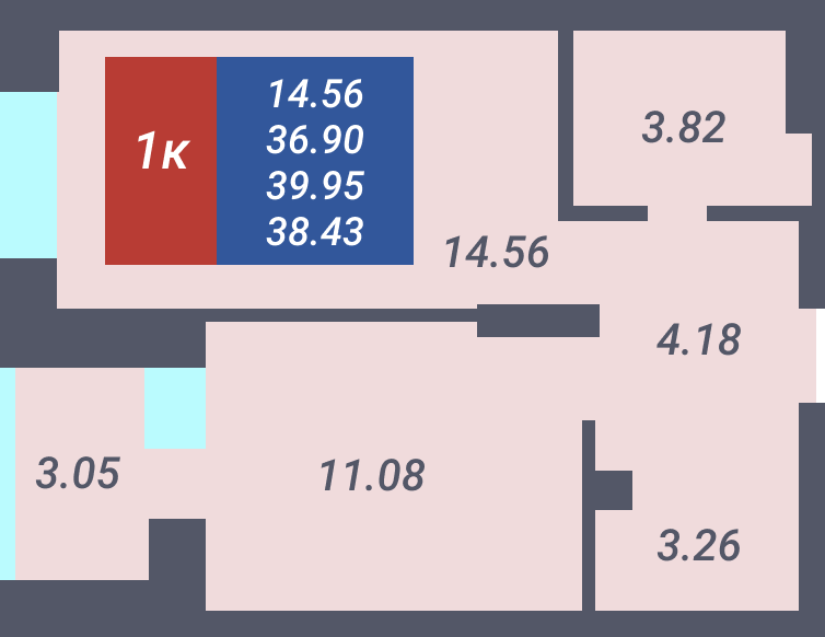 Общая площадь 36.9 м2
