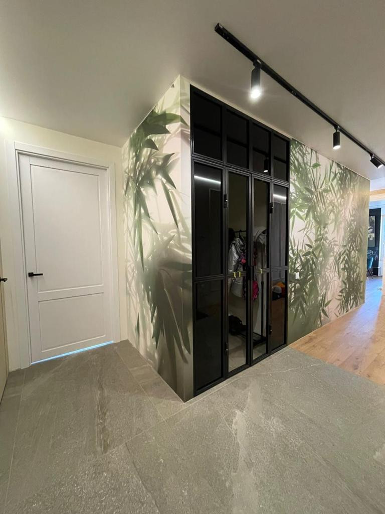 - На стенах эксклюзивные обои на заказ и окраска стен,