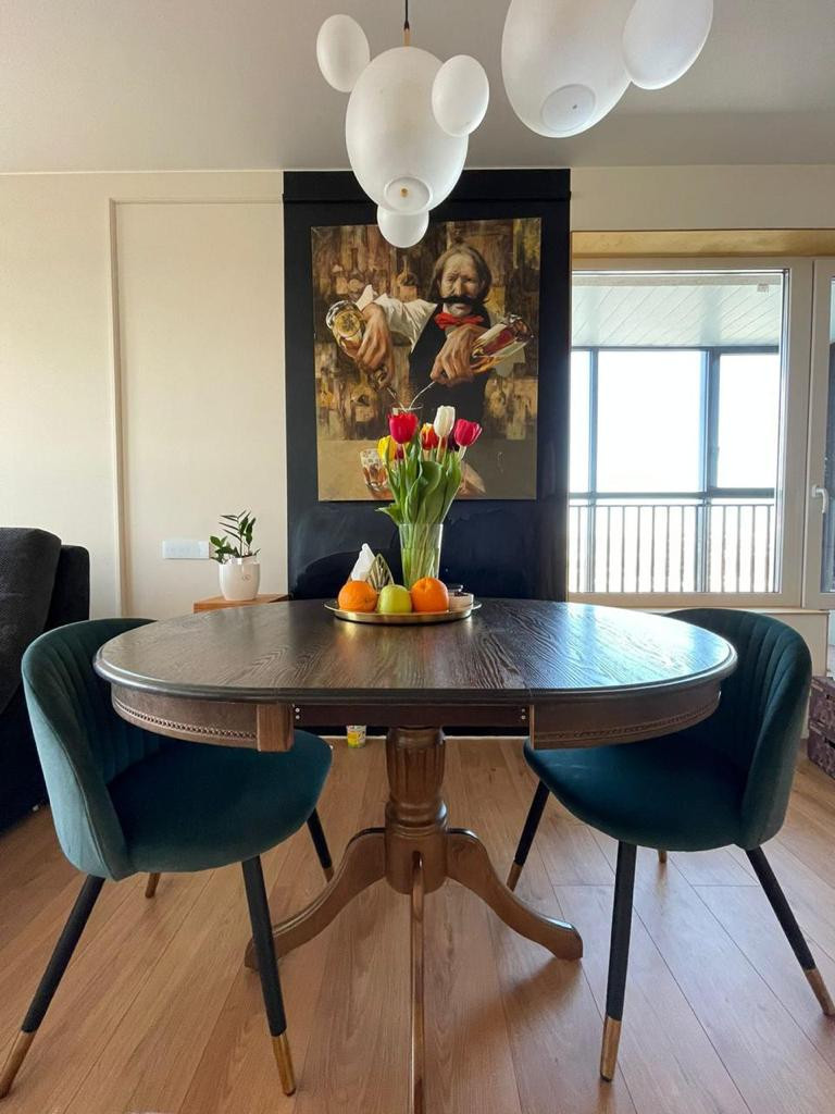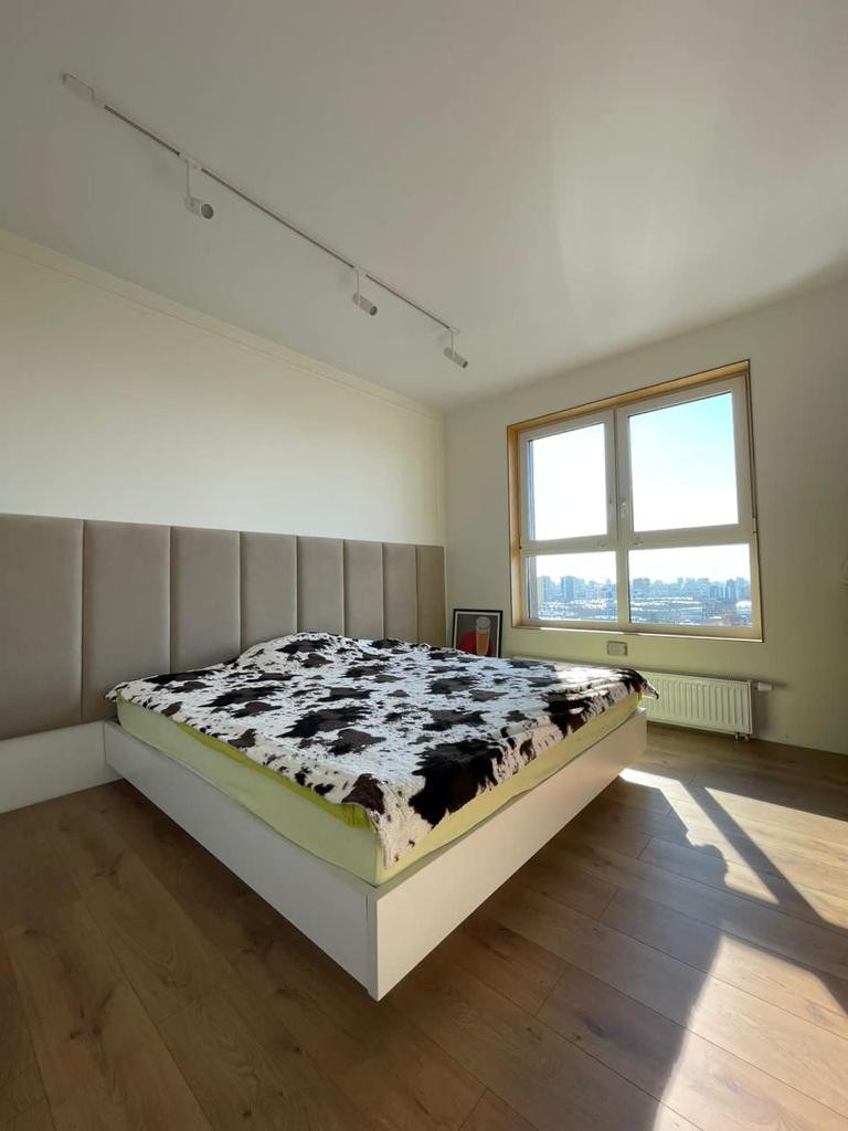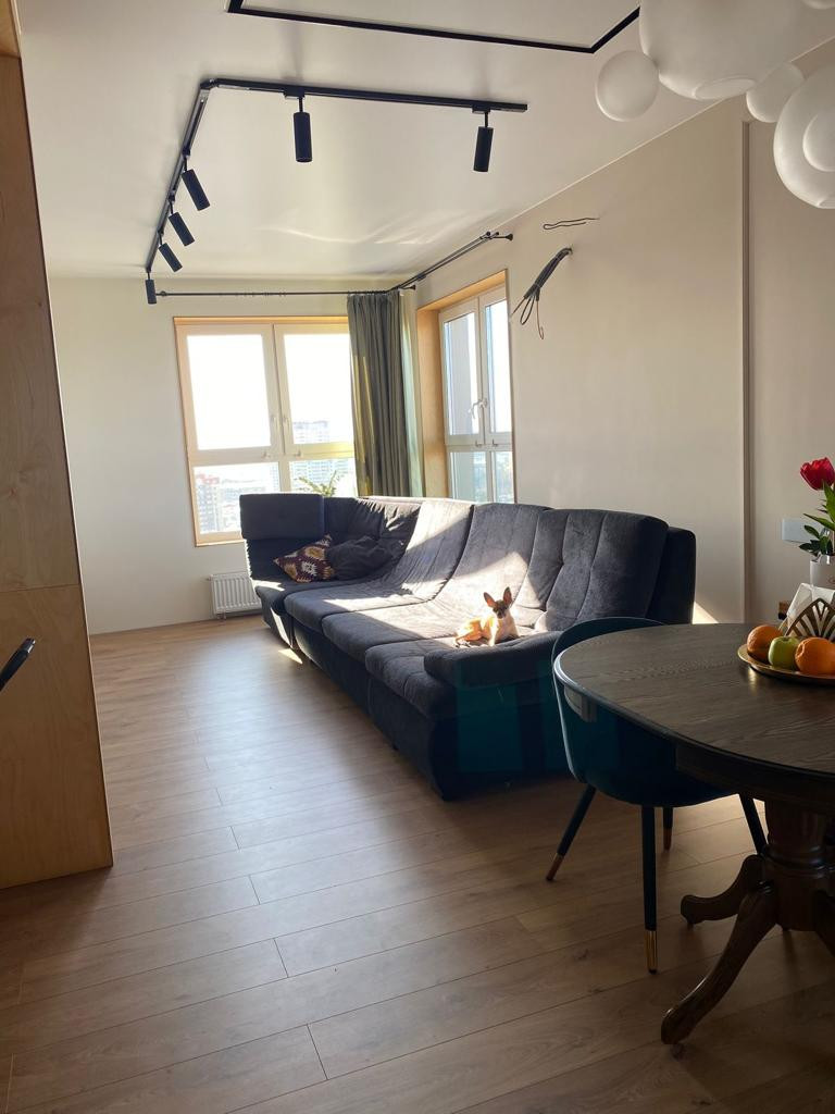 В квартире три полноценные комнаты, большая кухня -гостиная 34 кв.м. с большим балконом, где открывается красивый вид на город и парк, два просторных сан.узла, гардеробная.