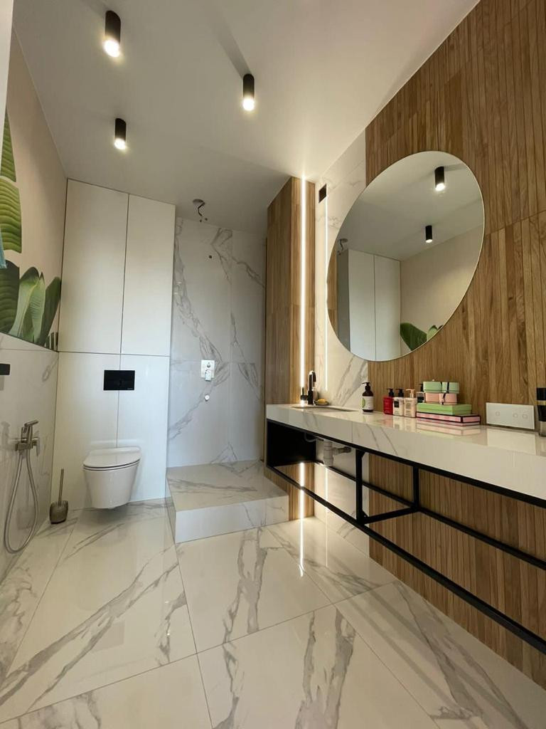 - Два больших Санузела -весь крупноформатный керамогранит Италия, сан.техника KERAMA MARAZZI, сместили и душевая система BelDagno,