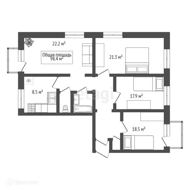 Общая площадь 98.4 м2