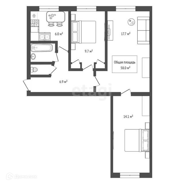 Общая площадь 58 м2
