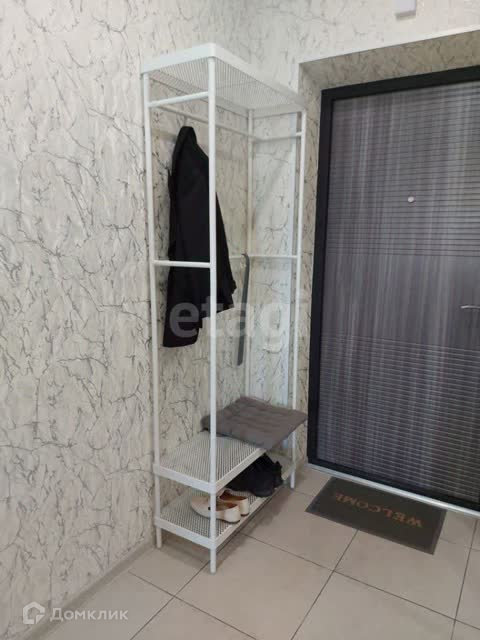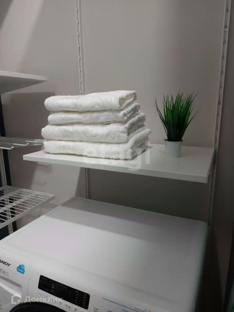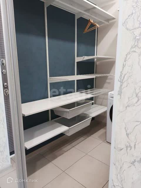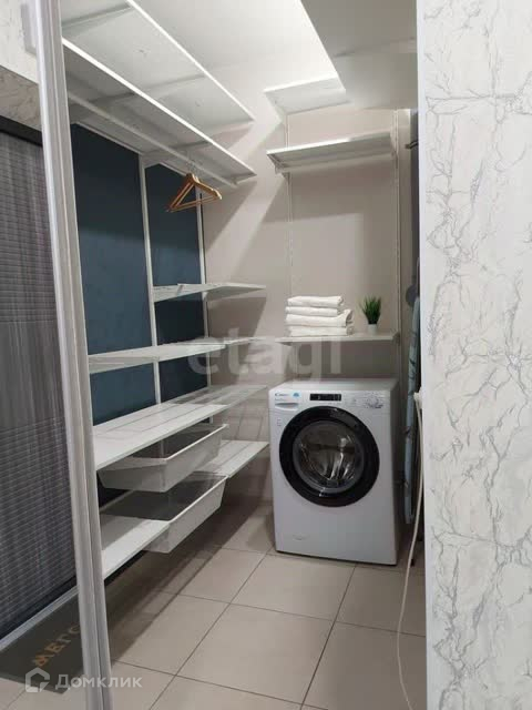 Внутри рай для модниц из полочек, вешалок, а так же стиральная машинка.