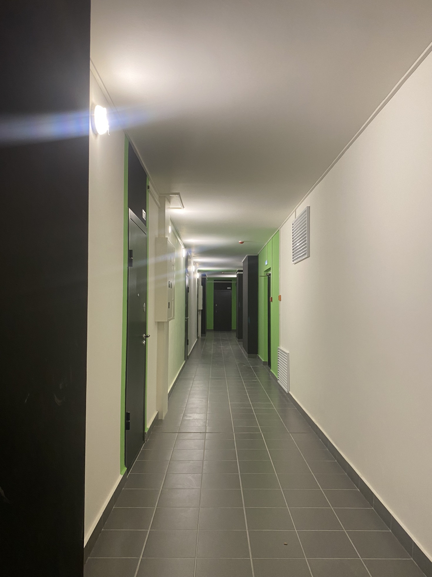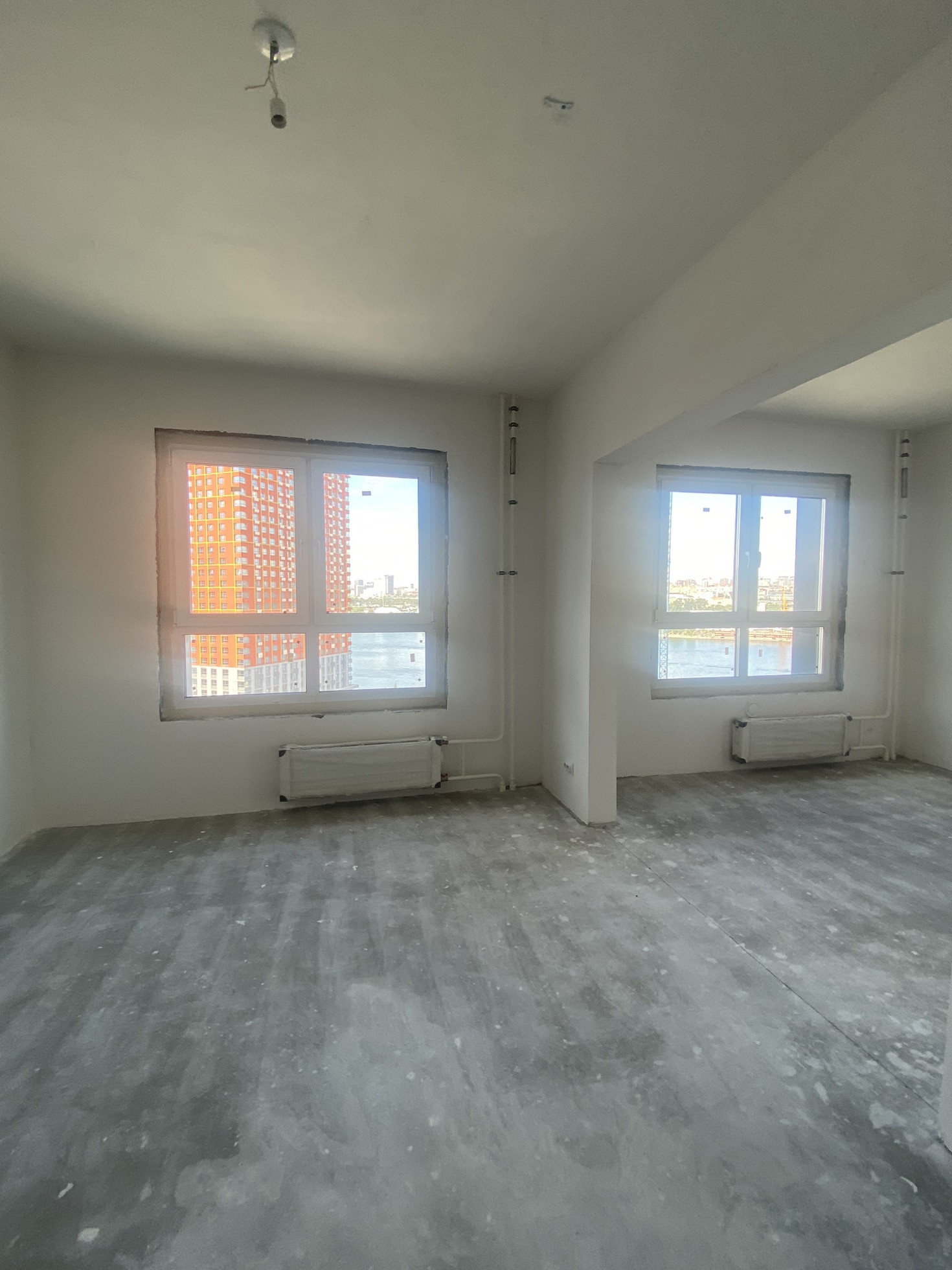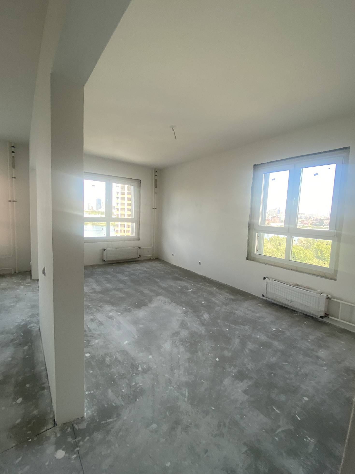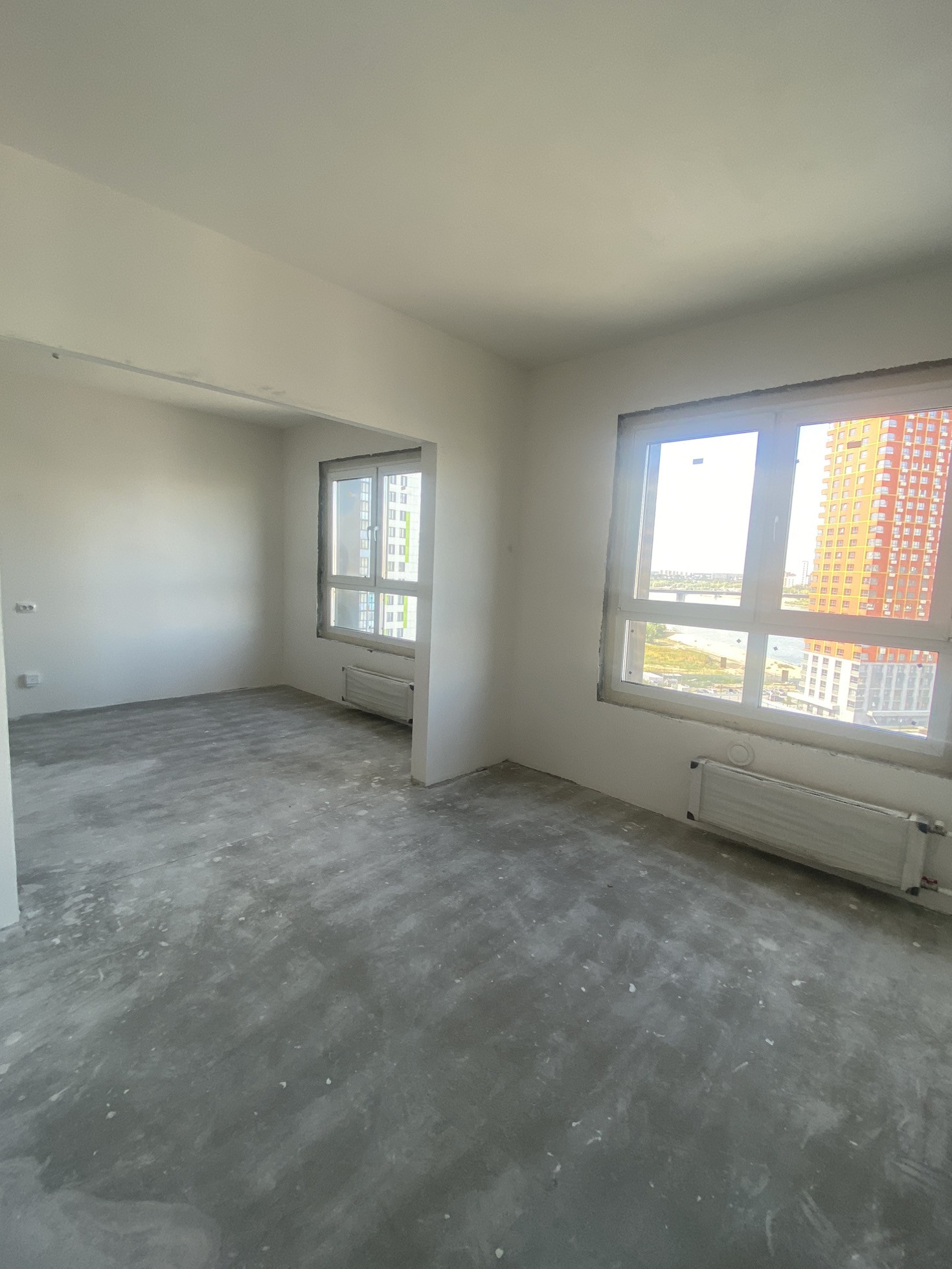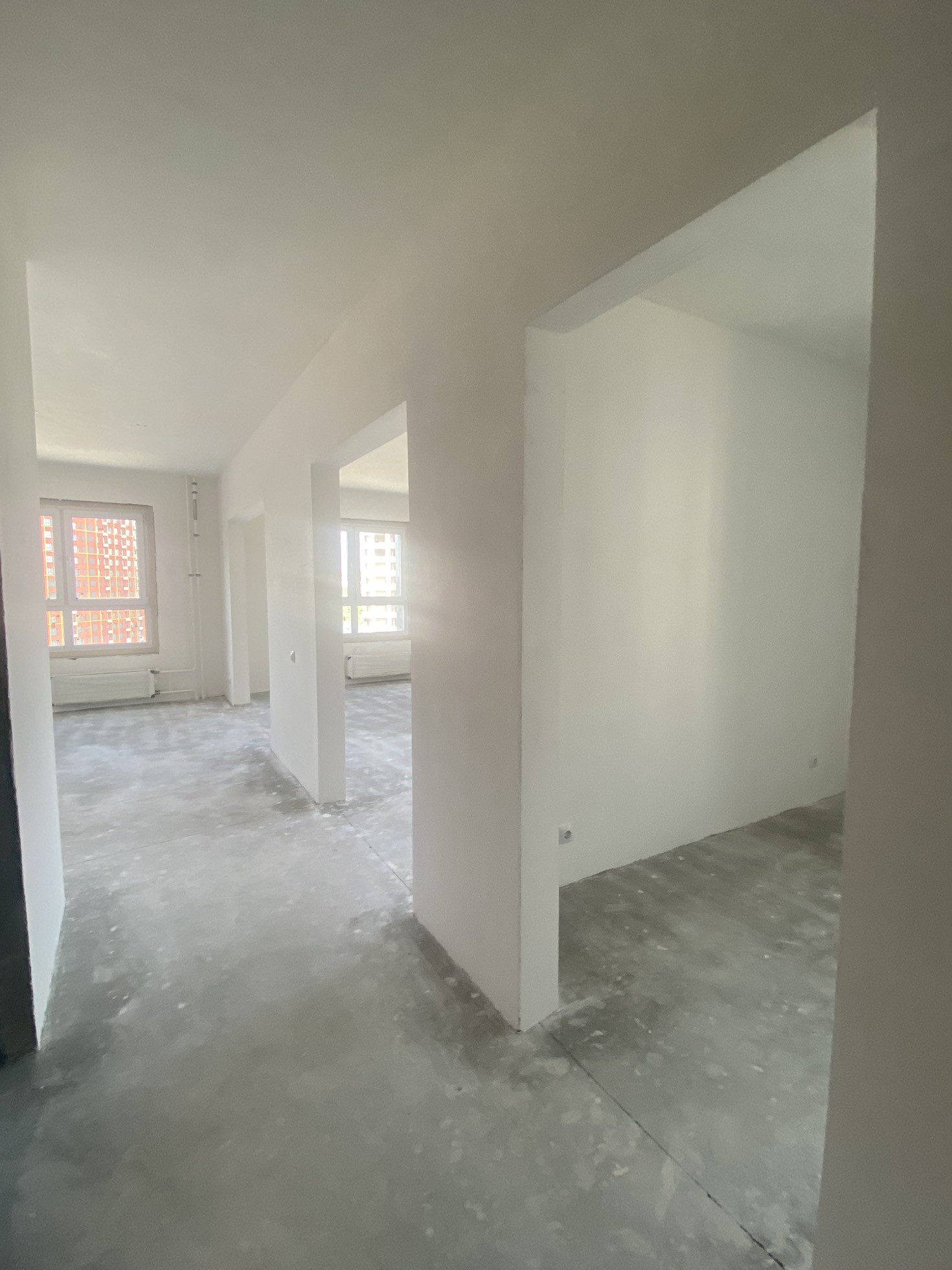 Квартира сдана в чистовой отделке,на стенах шпаклёвка,установлены розетки и выключатели.На полу стяжка!