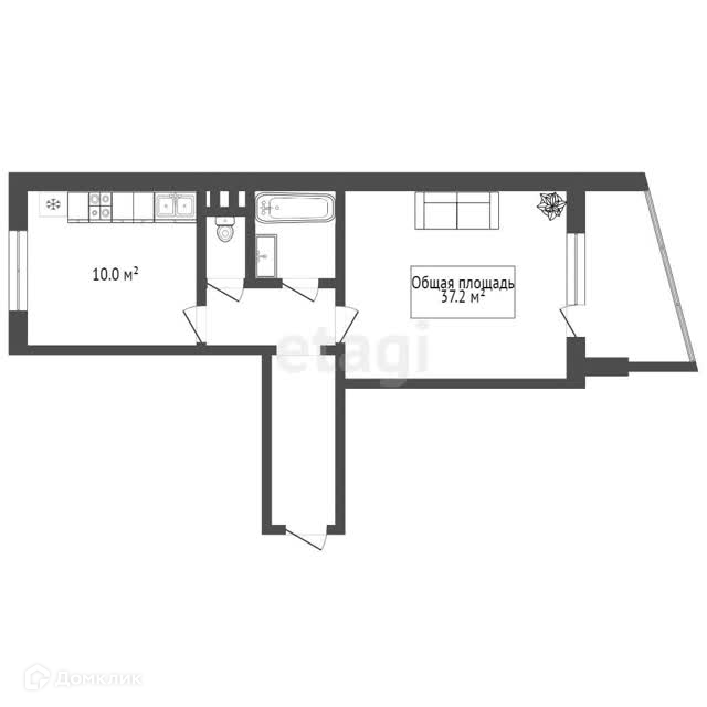 Общая площадь 37.2 м2