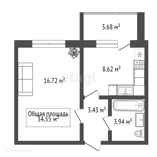Общая площадь 36 м2