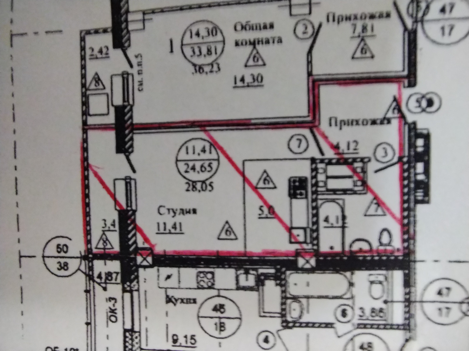 Общая площадь 28.4 м2